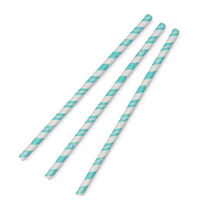 Vegware PS08-AS Jumbo Stripe Paper Straws 197mm Aqua Features: